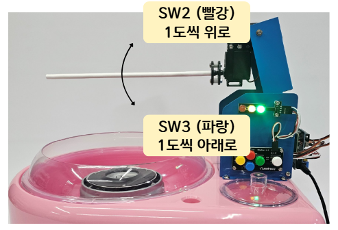 -. 설탕실이 계속 많이 나올 때 수동으로 로봇암의 각도를 올리고 내려서 조절하기