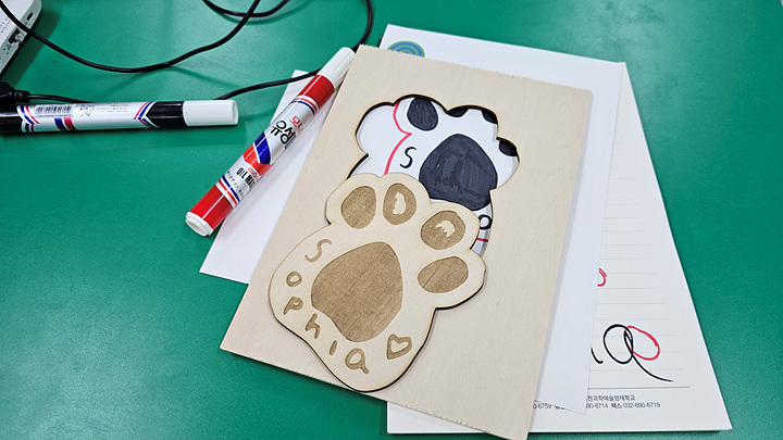 오프라인으로 그림을 그려 작업도 해보고, 도안에 따라 소프트웨어로 커팅 및 각인하여 예쁜 와인박스도 만들어 보았습니다.