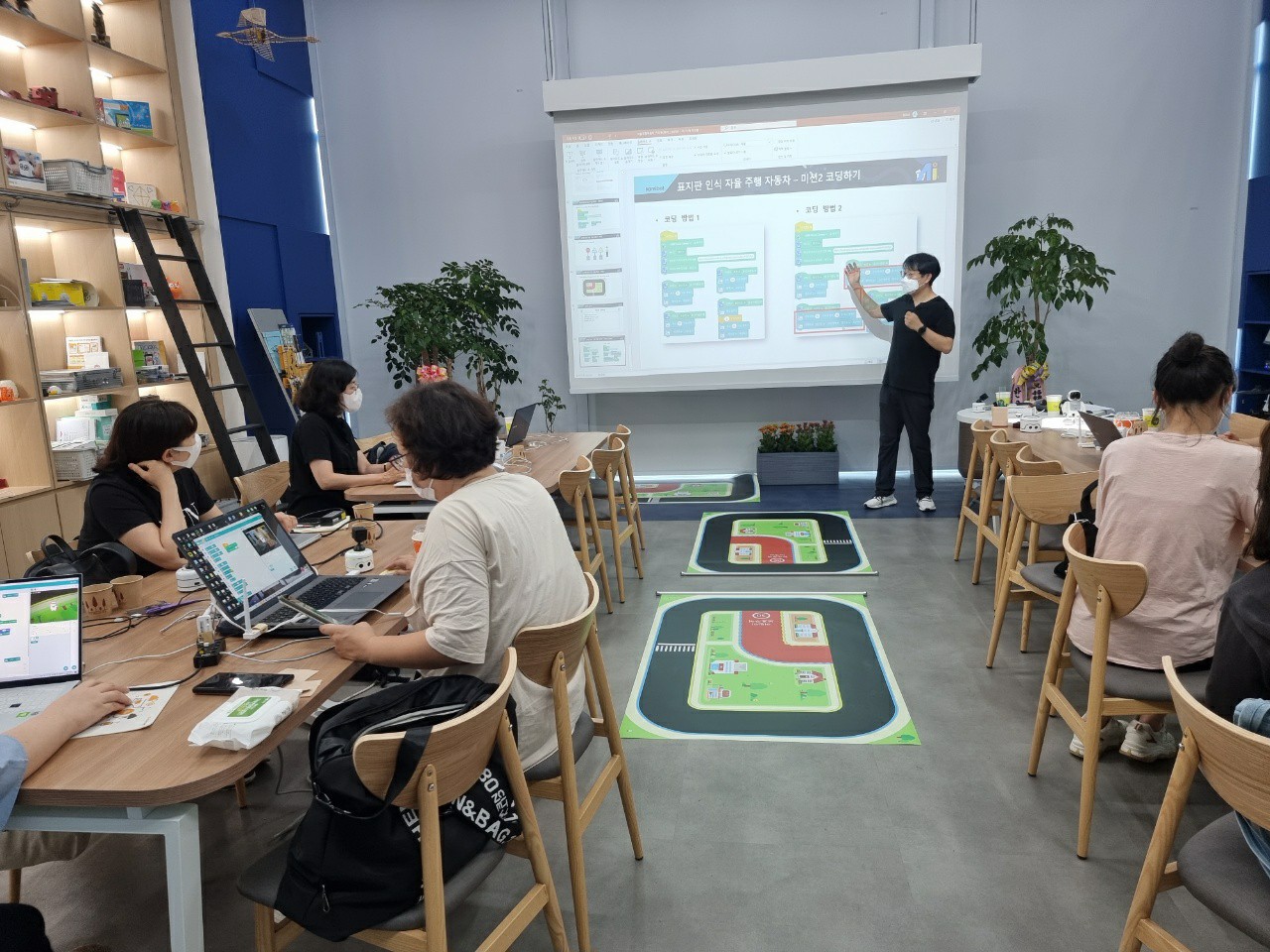매월 창의와교육에서 무료로 진행하는 연수로 7월 첫 번째로 언플러그드 코딩로봇 비누와 IP카메라를 가상카메라로 사용하는 법 그리고 이와 기계학습을 이용하여 자율주행로봇을 만들어 보았습니다.