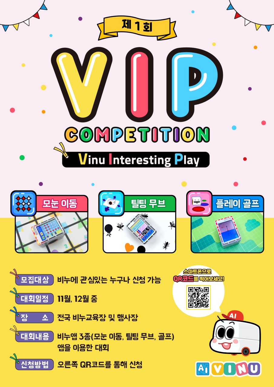 프로보에듀에서 비누 로봇의 활동 중 재미있는 것 3개를 가지고 제1회 제1회 V.I.P 대회 (Vinu Interesting Play) 를 진행합니다.