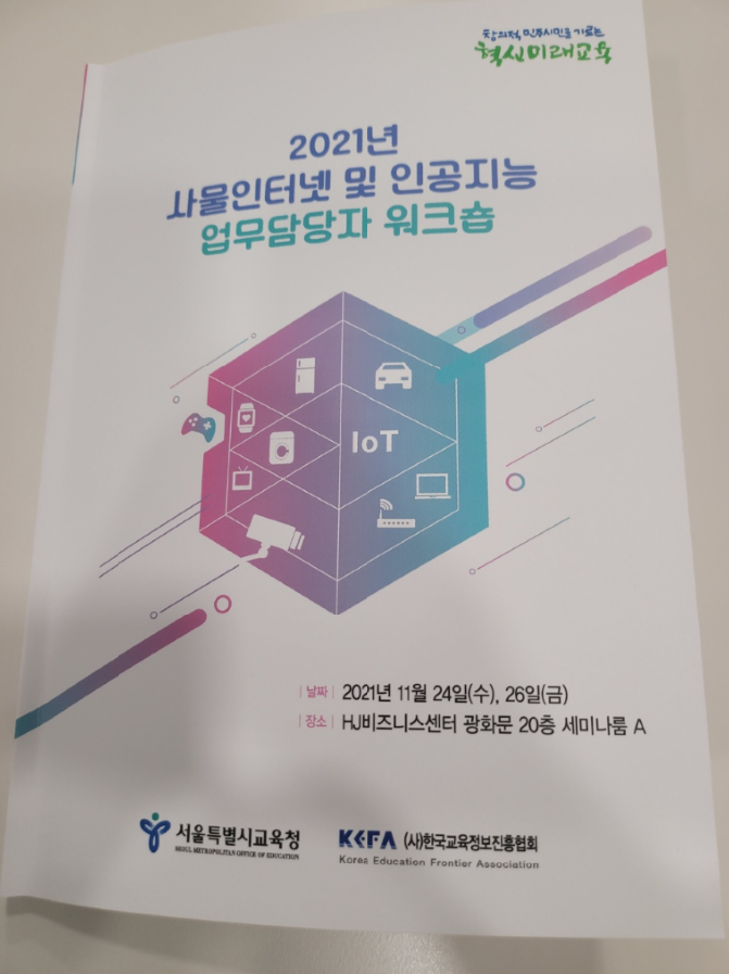 11월 24일 HJ비즈니스센터 광화문 세미나룸에서 2021년 사물인터넷 및 인공지능 업무담당자 워크숍에 참석하였습니다.