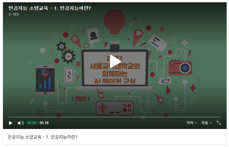 동영상 인공지능 소양교육은 아래와 같이 진행하였습니다.