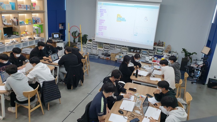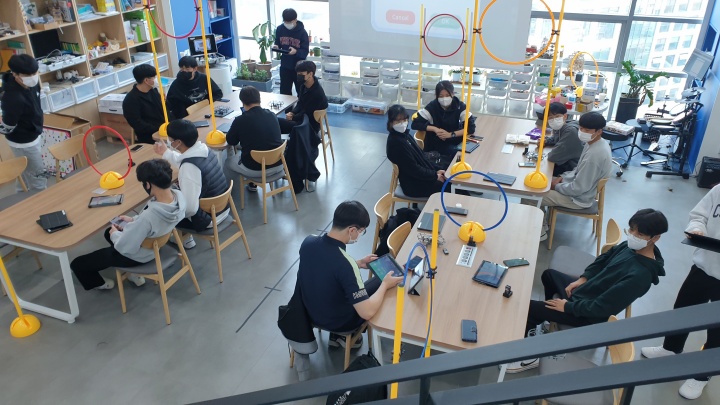 2022년 10월 21일 퇴계원 고등학교 학생 16명이 창의와교육에 놀러왔습니다^^6시간 동안 로봇 코딩, 인공지능 코딩, 드론 조종 및 코딩, 레이저박스, RSp 발명 등을 신나게 해보고 돌아갔습니다^^