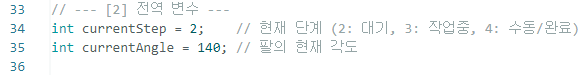 currentAngle은 서보모터의 현재 위치를 기억하기 위한 변수입니다.