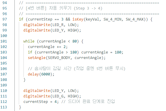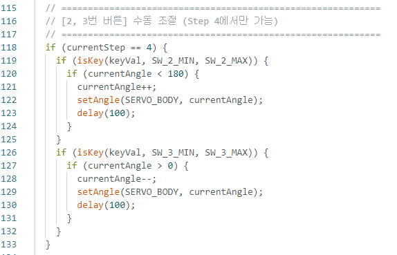 → 빨강 버튼(SW_2) => 각도 올리기