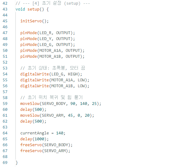 이를 통해 서보모터가 올바른 기준 위치에서 시작하도록 합니다.