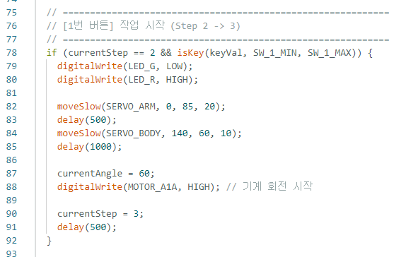 먼저 암(ARM) 서보모터를 제어하고,